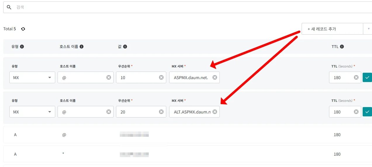 새로운 MX 값을 설정하기 전에 기존 값이 있으면 삭제해야 충돌을 방지할 수 있습니다.