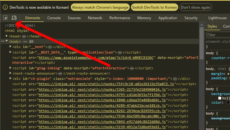 ctrl+shift+m을 눌러 툴바 디바이스를 열어보세요.