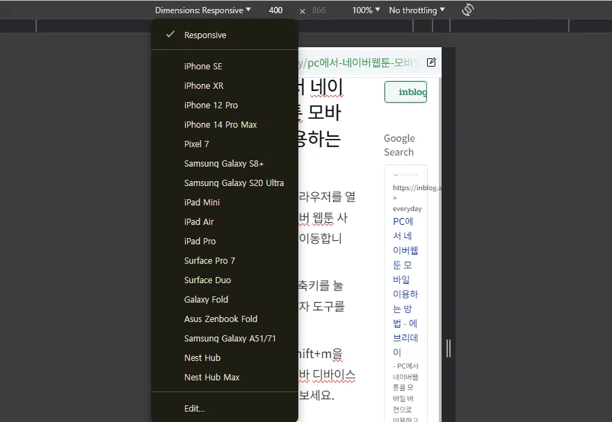 PC에서 네이버웹툰 모바일 이용하는 방법